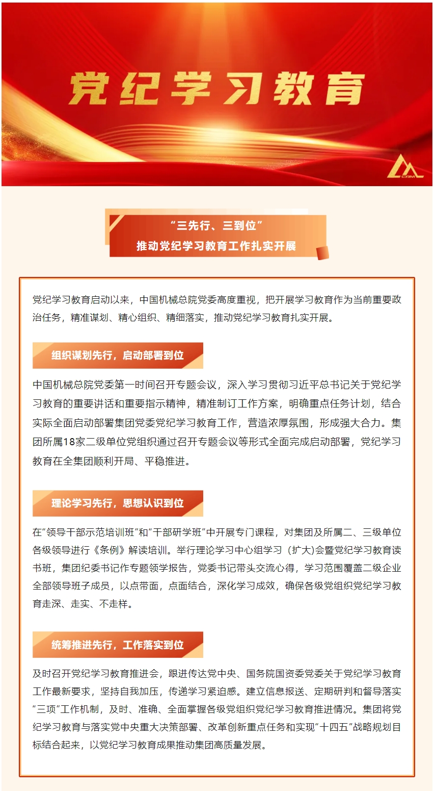 中國機(jī)械總院:三先行 三到位 推動(dòng)黨紀(jì)學(xué)習(xí)教育工作扎實(shí)開展